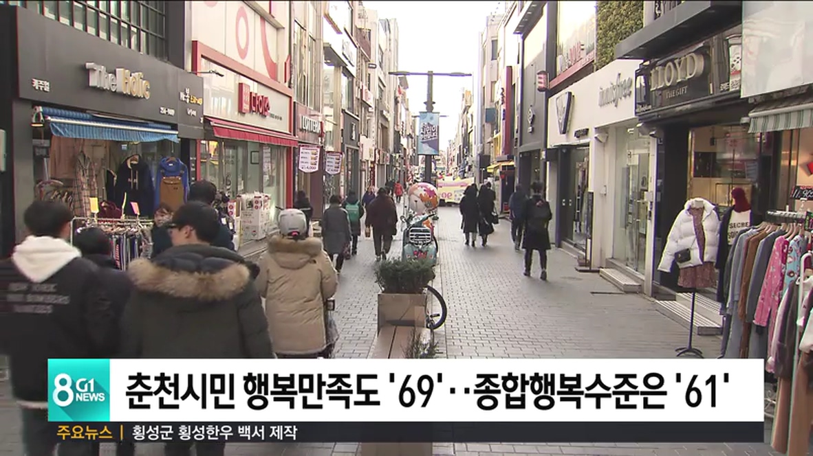 춘천시가 실시한 설문조사 결과, 시민 행복 만족도가 100점 만점에 69점으로 나타났습니다.