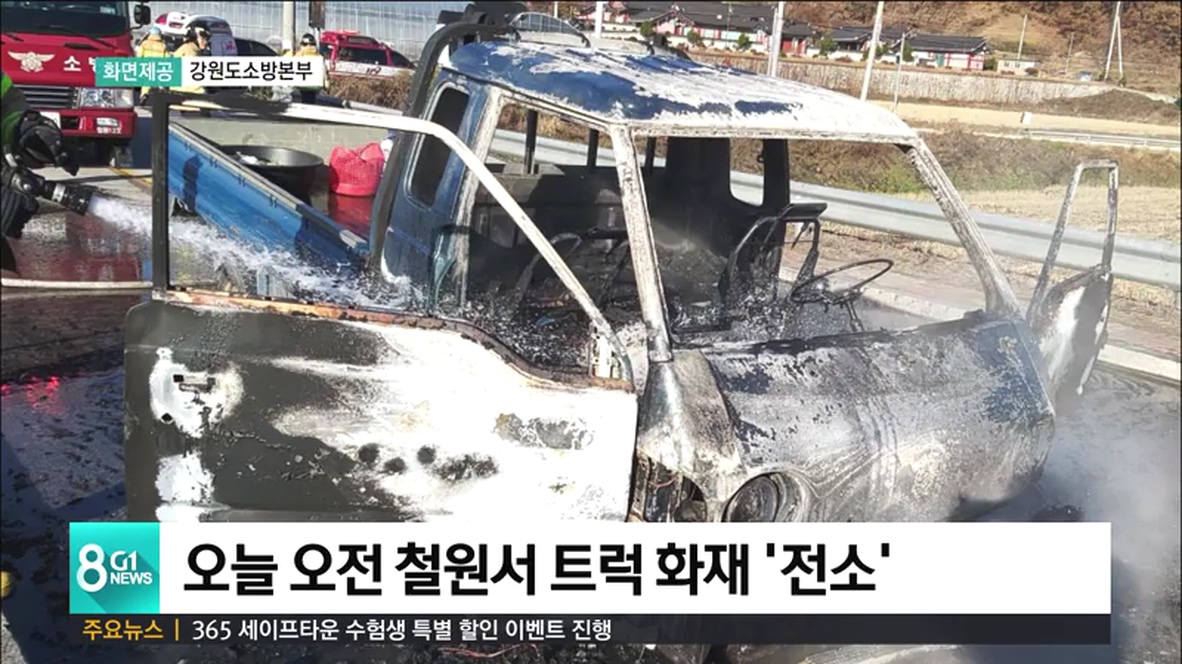 오늘 오전 8시 59분쯤, 철원군 철원읍 화지리의 한 도로에서 1톤 포터 트럭에서 불이 났습니다.