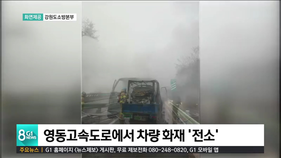 오늘 오전 7시 40분쯤 평창군 봉평면 영동고속도로 강릉방면 면온IC부근에서 55살 이모씨가 몰던 1톤 트럭에서 불이 나, 20여분 만에 꺼졌습니다.