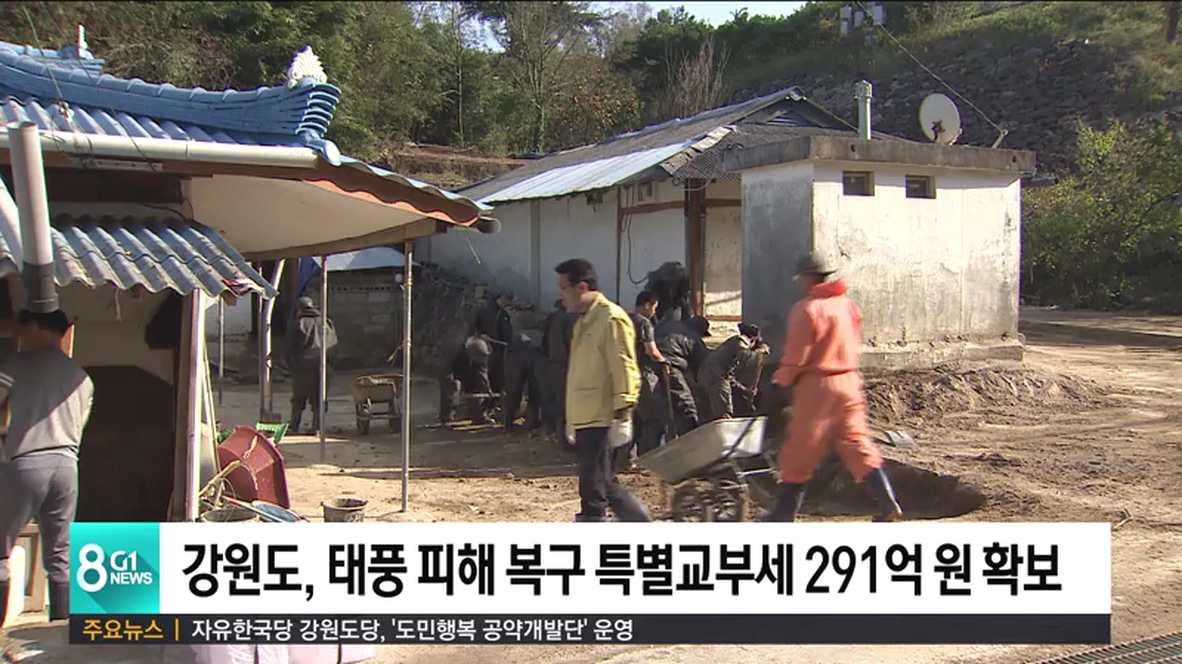 강원도는 제 18호 태풍 미탁 피해로 특별재난지역으로 선포된 강릉과 동해, 삼척의 피해시설 복구를 위해, 행정안전부로부터 특별교부세 291억원을 확보했다고 밝혔습니다.