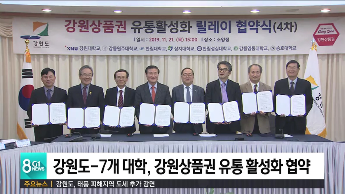 강원도는 오늘(21일) 춘천세종호텔에서 도내 7개 대학과 강원상품권 유통 활성화를 위한 업무협약을 체결했습니다.