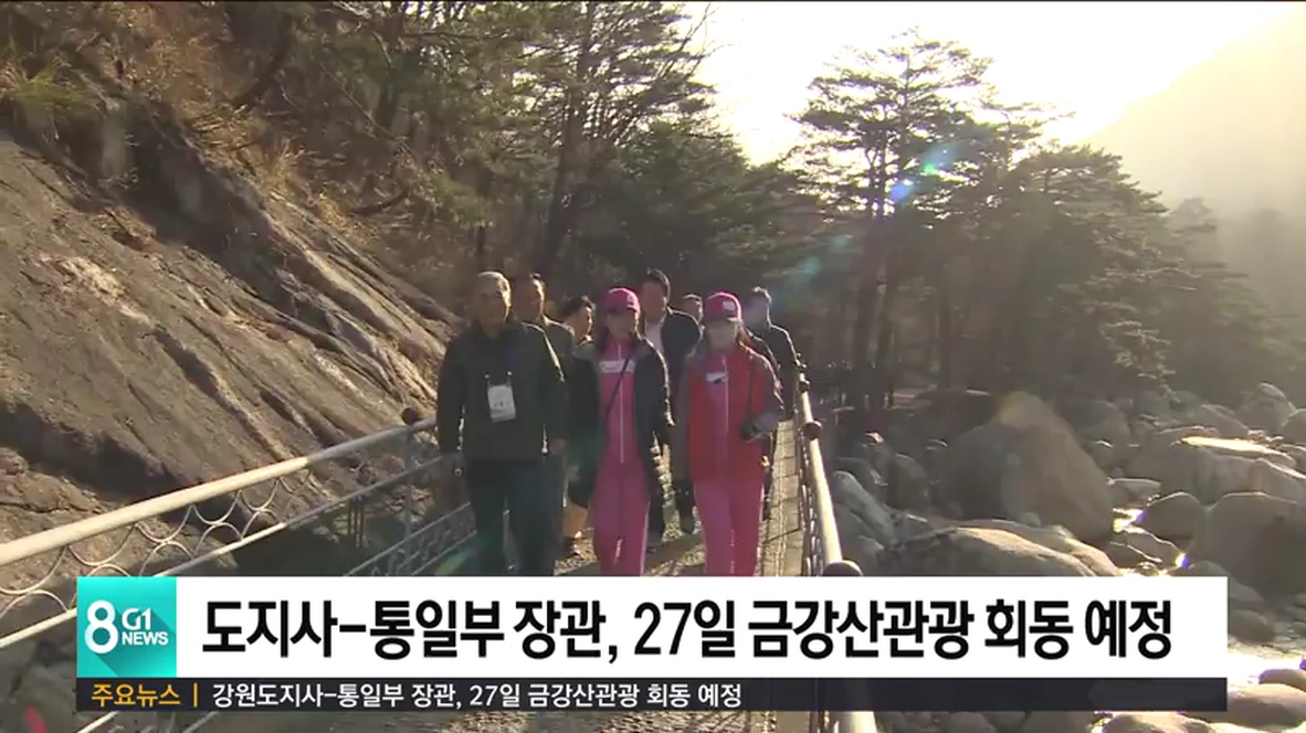 강원도에 따르면, 최 지사와 김 장관은 오는 27일 비공개 오찬 회동을 통해, 도내 시민사회단체 주도의 금강산 개별관광 재개에 대한 통일부의 적극적인 검토와 입장 변화를 요구할 방침입니다.