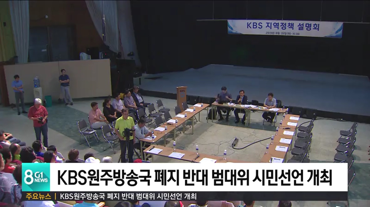 범대위는 KBS가 지역 주민의 의사를 무시하고 일방적으로 추진하고 있는 원주방송국 폐지는 지방자치와 분권에 역행하는 처사라며, 백지화를 촉구하는 시민선언을 발표할 계획입니다.