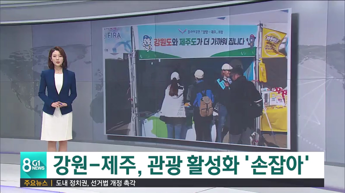 플라이강원 제주노선 취항을 계기로, 강원도와 제주도가 상생 업무협약을 맺고, 관광교류를 중심으로 다양한 사업을 추진하기로 했습니다.