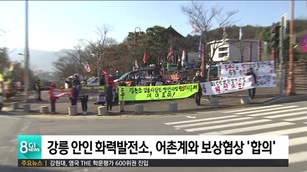 강릉시에 따르면, 강릉시 사회갈등조정위원회의 중재로 강릉 안인 화력발전소와 안인진 어촌계가 오늘(25일), 어업 보상에 관한 합의에 성공했습니다.