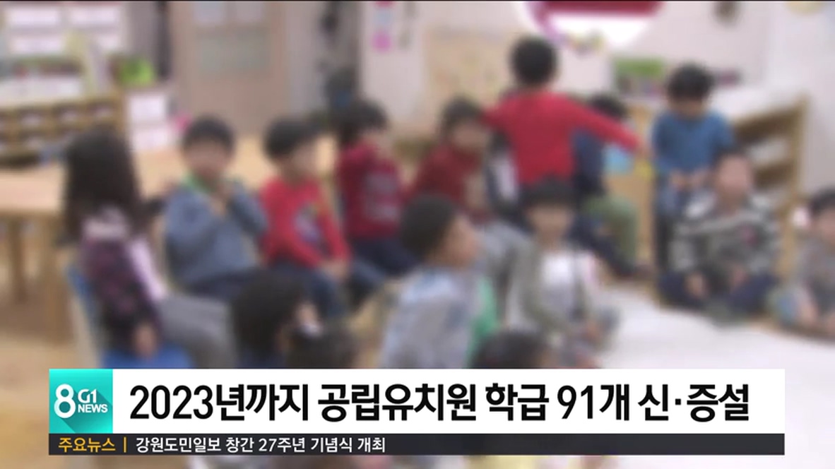 강원도교육청은 오는 2023년까지 공립 단설유치원 5곳을 신설하고, 기존 공립유치원 학급을 증설해, 모두 91개 학급이 늘어난다고 밝혔습니다.