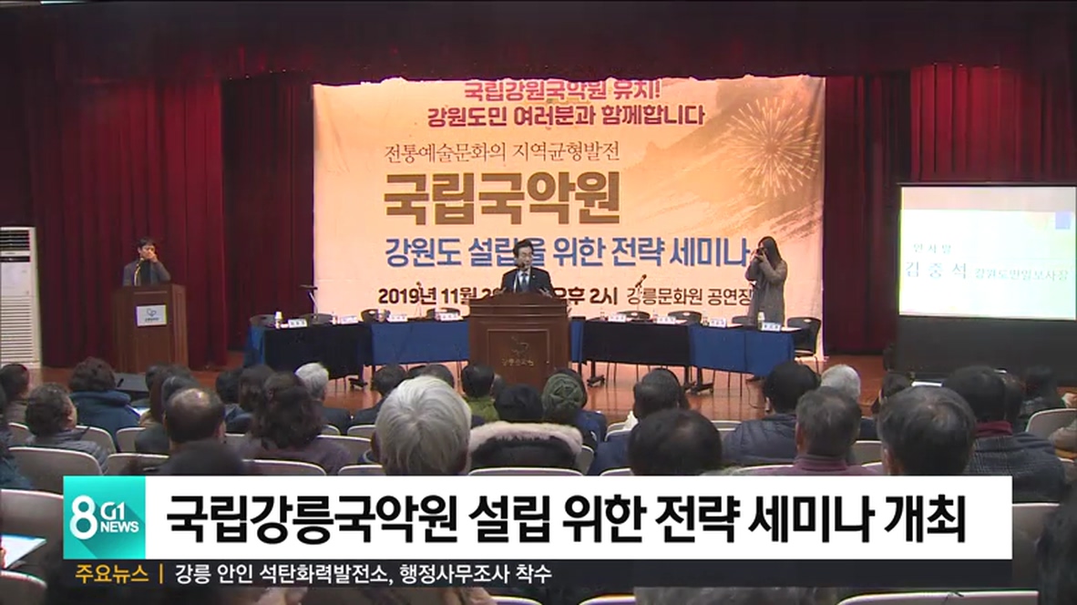강원도민일보와 강릉시 등이 개최한 이번 세미나에서는 강원도의 독특한 전통 문화를 전승하고, 특히 향후 남북 문화 교류의 교두보 역할을 하기 위해서 강릉에 국립국악원을 설치할 당위성이 충분하다는 데 의견이 모아졌습니다.