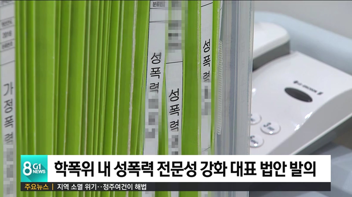 지난 8월 도내에서 발생한 초등학생 집단 성폭행 사건과 관련해 대책 마련이 시급하다는 G1 보도 이후, 학교폭력대책위원회에 성폭력 전문성을 강화하는 대표 법안이 발의됐습니다.