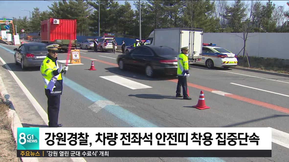 강원지방경찰청은 지난해 9월, 차량 전좌석 안전띠 착용 의무화가 시행됐지만, 도내 착용률이 저조함에 따라 '전좌석 안전띠 미착용' 집중단속을 벌일 계획이라고 밝혔습니다.