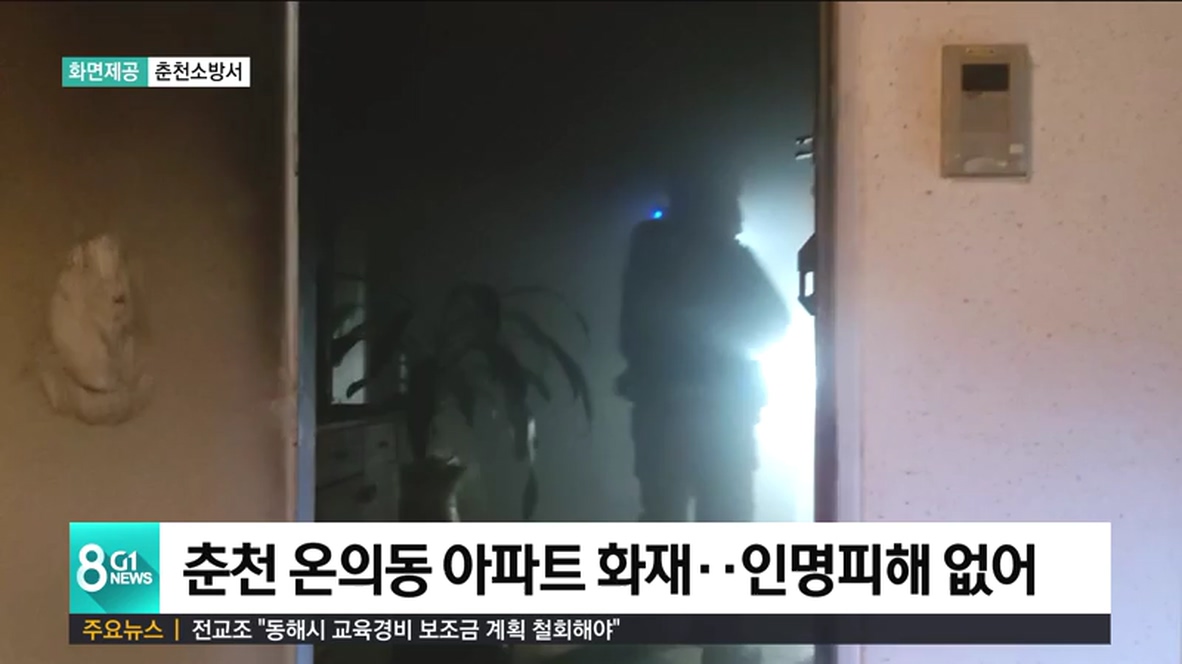 오늘(5일) 오전 4시 22분쯤 춘천 온의동의 한 아파트에서 화재가 발생해 20여 분 만에 꺼졌습니다.