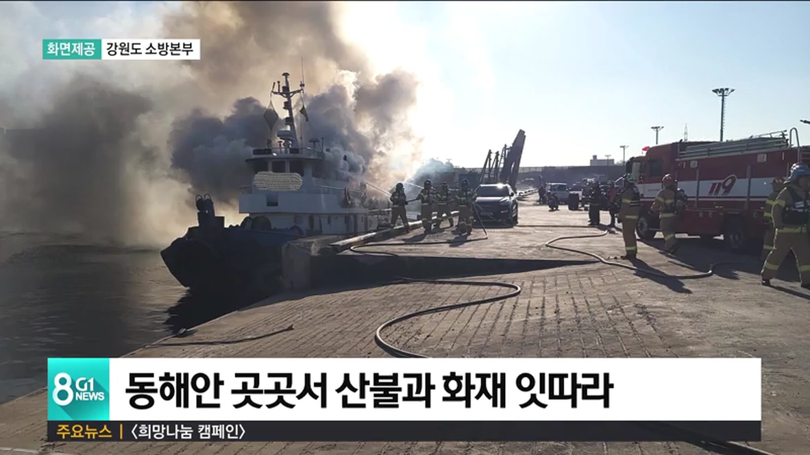 앞서 오전 9시 42분쯤, 동해시 송정동 동해항에 정박해 있던 40톤급 예인선에서 불이 나, 조타실 일부가 불에 탔습니다.