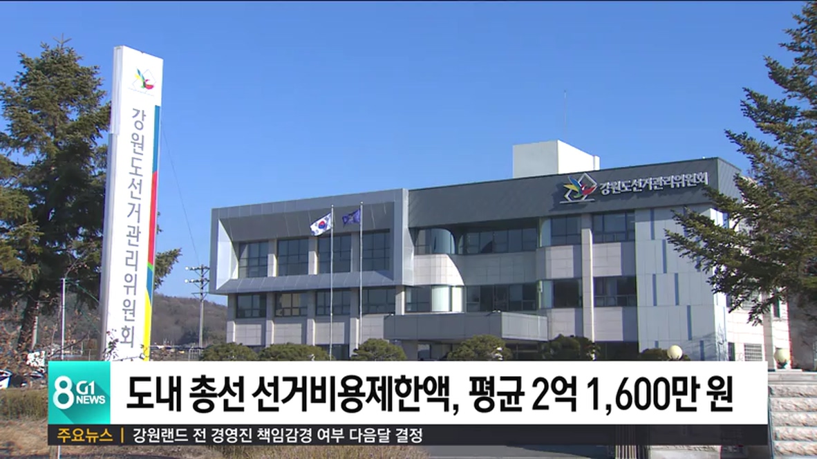 강원도선거관리위원회는 제21대 국회의원 선거에서 도내 지역구 후보자가 사용할 수 있는 선거비용제한액을 지난 20대 선거에 비해 2천 300만 원이 늘어난 평균 2억 천 600만 원으로 확정했습니다.