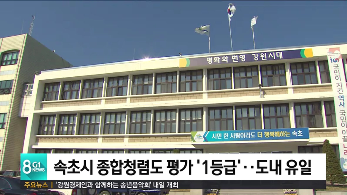 속초시는 전국 609개 공공기관을 대상으로 한 종합청렴도 평가에서 지난해보다 3단계 상승한 1등급을 받았다고 밝혔습니다.