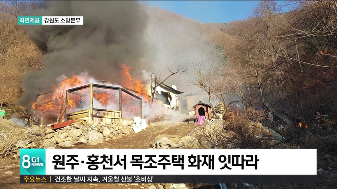 앞서 낮 12시 32분쯤에는 홍천군 동면 좌운리의 한 주택에서 불이 나, 66㎡ 목조 주택이 불에 타고 소나타 승용차가 그을렸습니다.