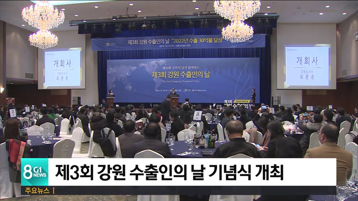 강원도와 한국무역협회 강원지역본부는 오늘 원주 인터불고호텔에서 도내 기업인과 수출유공자 등 250여명이 참석한 가운데, 제3회 강원 수출인의 날 기념식을 개최했습니다.