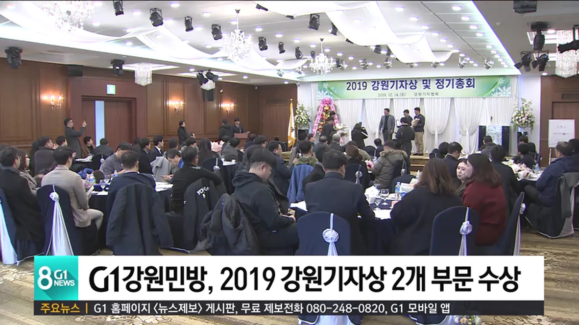 G1강원민방은 최돈희.윤수진.이광수.이정석 기자가 취재한 '콜센터 갑질 의혹' 연속보도와 유세진 기자가 취재한 '폐기물된 물고기 아파트' 보도로 각각 2019 강원기자상 기획취재와 사진영상부문에서 수상했습니다.