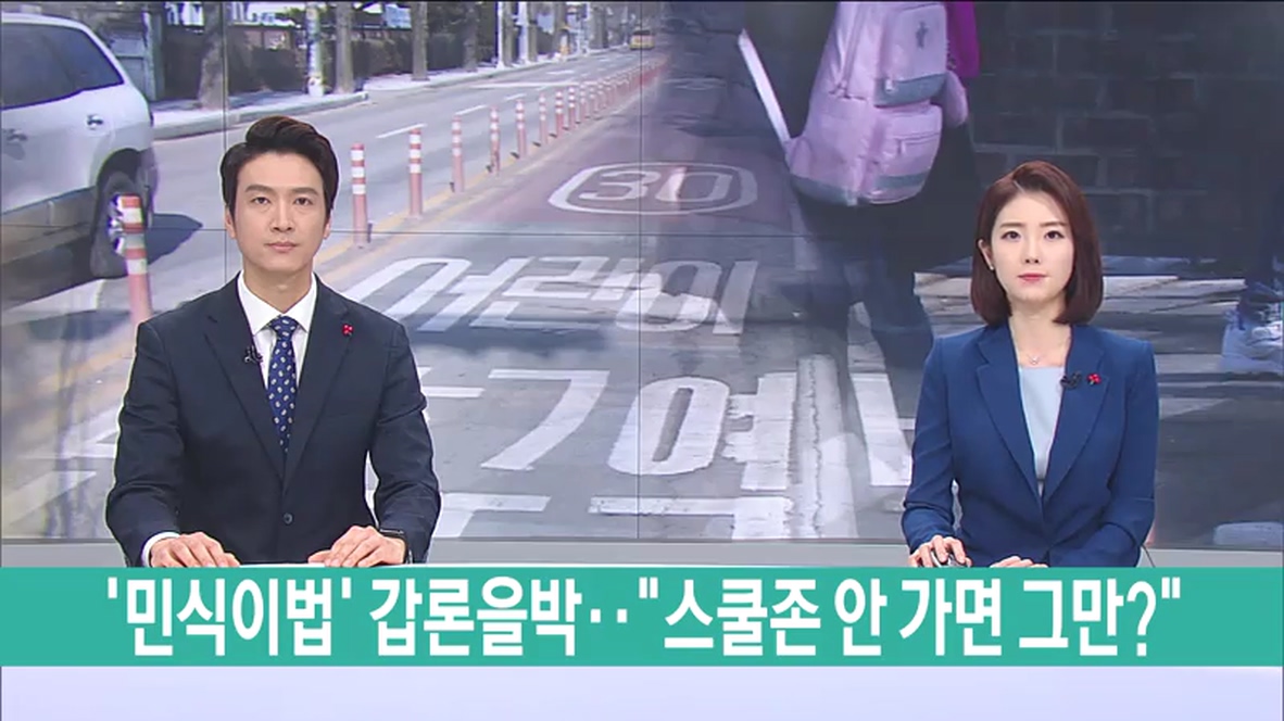 (남) 이르면 내년 봄 '민식이법'이 시행됩니다. 교통사고로부터 우리 아이들을 보호해야하는 건 당연하지만 누구나 부모이자 운전자가 될 수 있기 때문에 갑론을박이 벌어지고 있습니다.