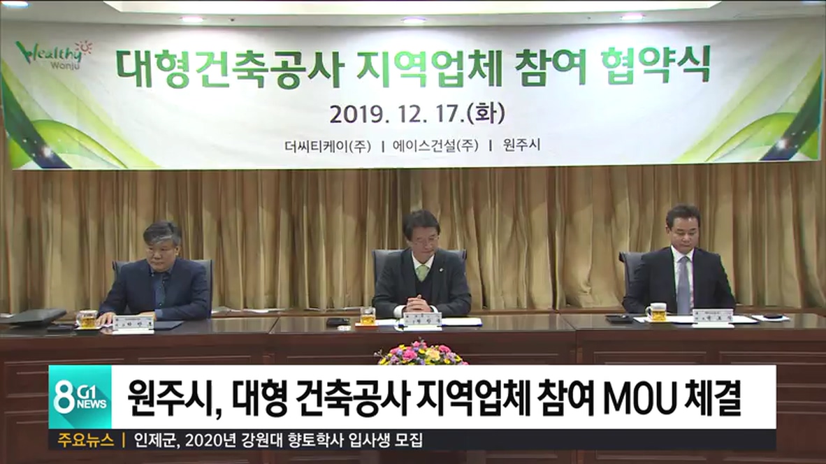 원주시는 혁신도시에 대형 공사를 진행하는 건설업체와 지역 업체 참여 비율을 보장하는 업무 협약을 맺었습니다.