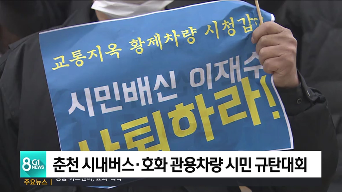 춘천시민자유연합은 오늘 춘천시청 앞에서 의견 수렴 절차 없이 일방적으로 춘천 시내버스 노선을 개편해 주민 불편이 가중되고 있다며, 시민이 반대하는 버스 노선 개편을 고집하는 정확한 이유를 밝히라고 요구했습니다.