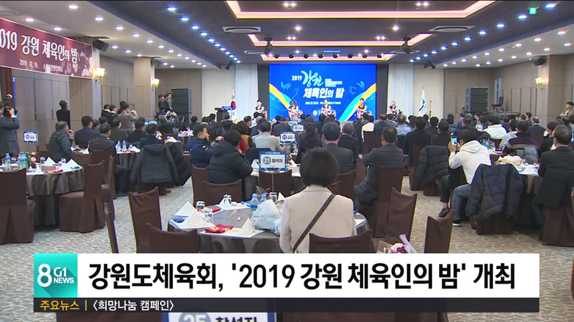 올 한 해 다양한 종목에서 활약한 도내 체육인을 격려하기 위한 '2019 강원 체육인의 밤' 행사가 춘천 스카이컨벤션 웨딩홀에서 열렸습니다.