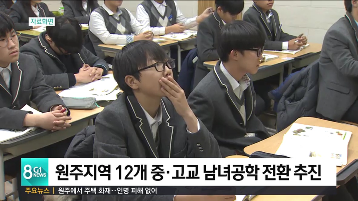 원주지역 중.고등학교를 남녀공학으로 전환하는 방안이 추진됩니다.