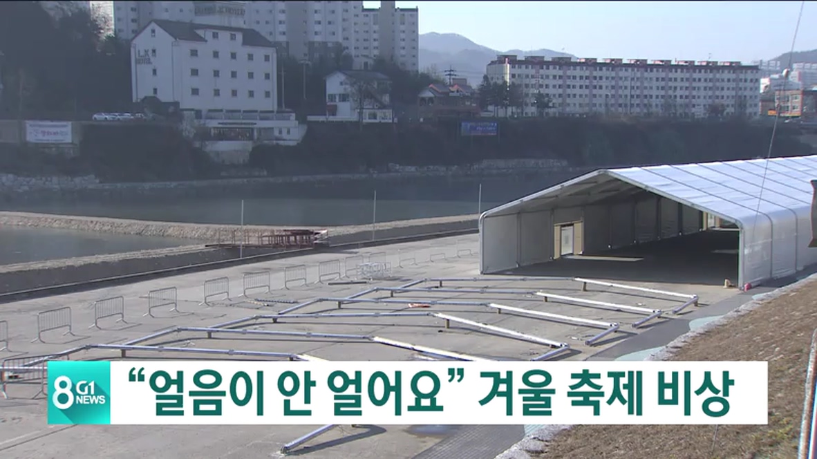 올 겨울 평년보다 유독 포근한 날씨가 이어지고 있습니다. 얼음이 얼지 않아 당장 겨울 축제를 열어야 하는 지자체엔 비상이 걸렸습니다.