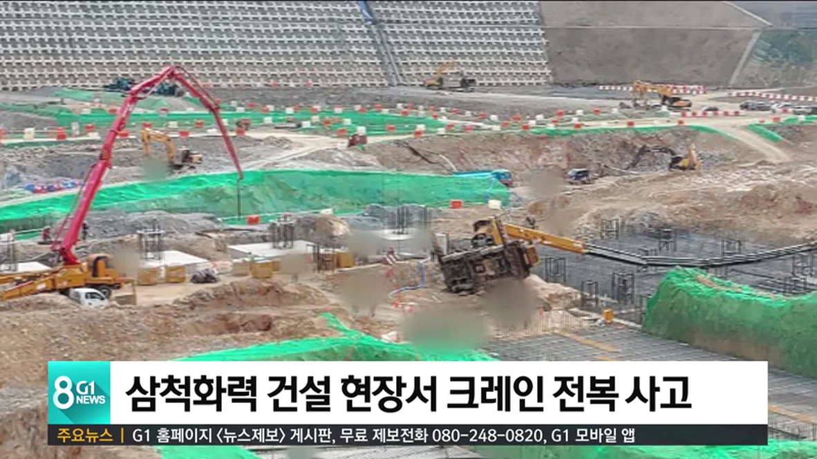 오늘(21일) 오전 11시쯤, 포스파워 삼척화력 1.2호기 건설 현장에서 자재를 옮기던 50t 크기의 이동식 크레인이 전복되는 사고가 발생했습니다.