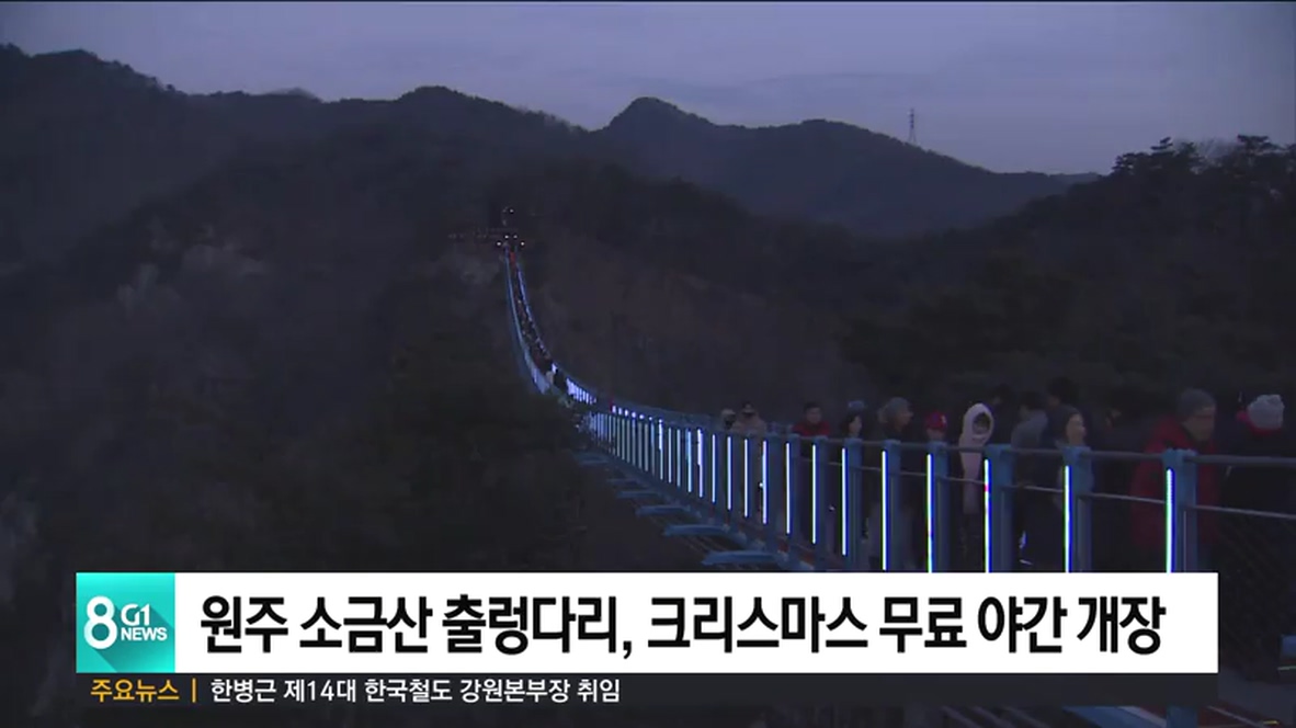 원주시는 내일(24)부터 이틀간 오후 6시부터 저녁 9시까지, 소금산 출렁다리 입장을 무료로 운영합니다.