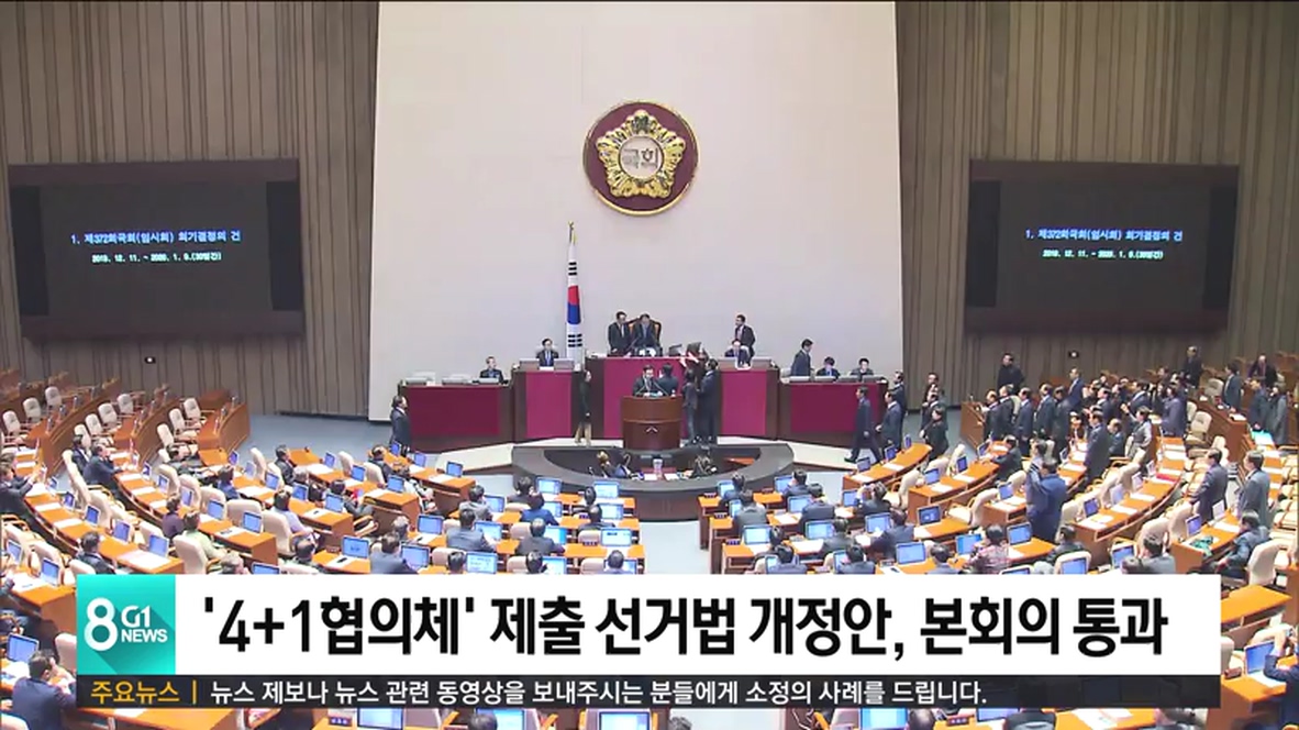 국회는 오늘 오후 본회의를 열고 한국당을 제외한 여·야 '4+1 협의체'가 제출한 선거법 개정안을 가결시켰습니다.
