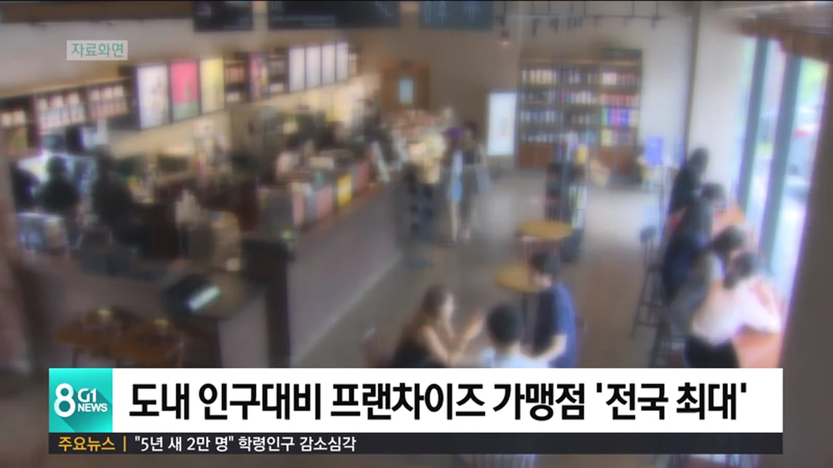 통계청이 발표한 2018년 기준 프랜차이즈 가맹점 조사 잠정 결과에 따르면 도내 프랜차이즈 가맹점은 모두 7천32곳으로 인구 만 명당 가맹점 수가 전국에서 가장 많은 46.2곳에 달했습니다.