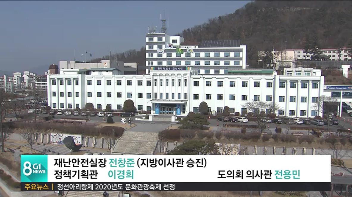 이번 인사로 전창준 재난안전실장이 지방이사관으로 승진 임용됐고, 정책기획관에 이경희 평화지역문화관장, 도의회 의사관에 전용민 레고랜드지원과장을 승진 임용했습니다.