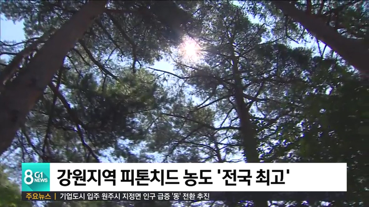 면역력 증가나 정서적 안정에 효과가 있는 것으로 알려진 피톤치드 농도가 강원 지역이 전국에서 가장 높다는 연구결과가 나왔습니다.