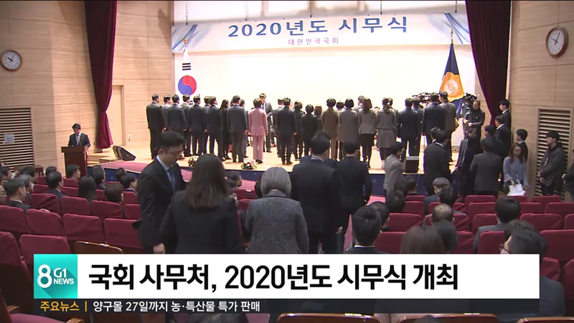 국회사무처는 오늘, 의원회관 대회의실에서 유인태 사무총장과 한공식 입법차장 등 임직원이 참석한 가운데, 2020년도 시무식을 개최했습니다.