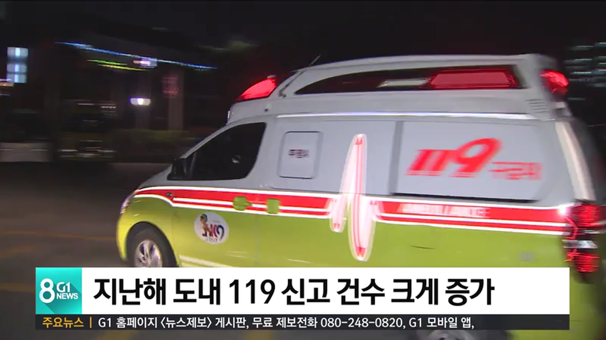 지난해 강원지역에서 접수된 119 신고 건수가 크게 증가한 것으로 나타났습니다.