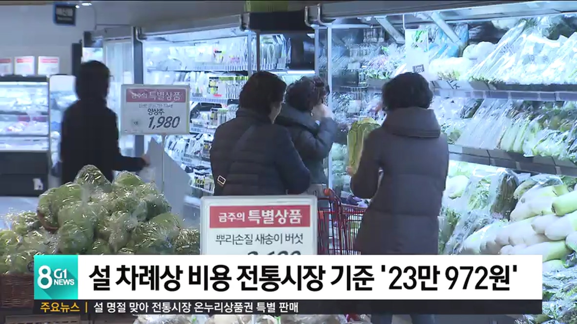 올해 설 차례상 비용은 전통시장 기준으로 23만원 정도 드는 것으로 나타났습니다.
