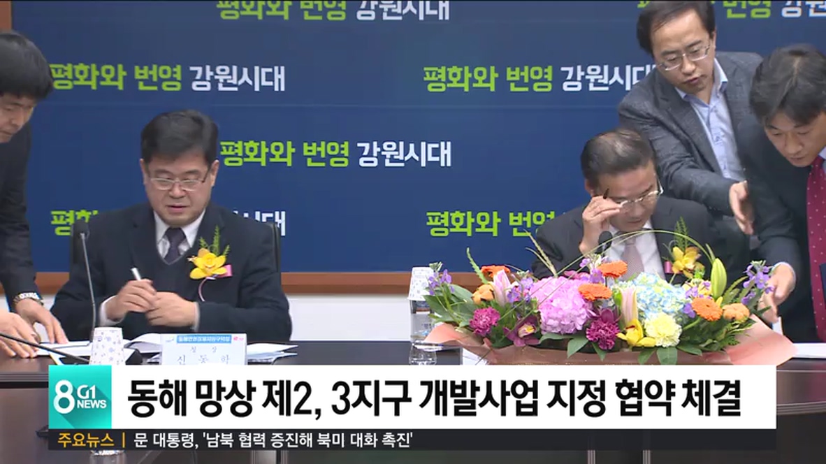 강원도와 동부건설은 강원도청에서 사업 계획 보고와 함께 협약을 맺고, 망상 제2지구와 제3지구 개발사업 시행자 지정에 따른 사업자 권리와 의무 규정 이행에 합의했습니다.