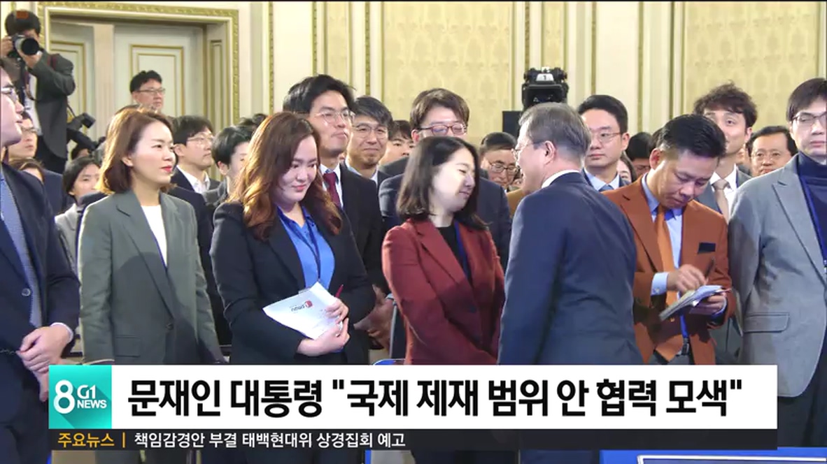 문 대통령은 오늘 청와대 영빈관에서 열린 신년 기자회견에서 "이제는 북미 대화만 바라보지 않고 남북 협력을 증진시키며 북미 대화를 촉진해 나갈 필요성이 높아졌다"며