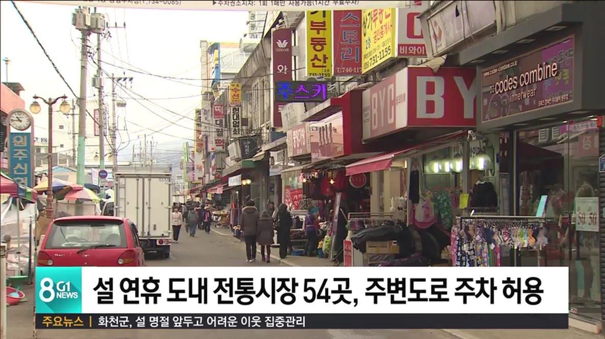 강원도는 설 연휴 전후로 전통시장을 찾는 방문객의 편의를 위해 오는 18일부터 27일까지 도내 54개 전통시장 주변 도로에서 주정차를 허용한다고 밝혔습니다.