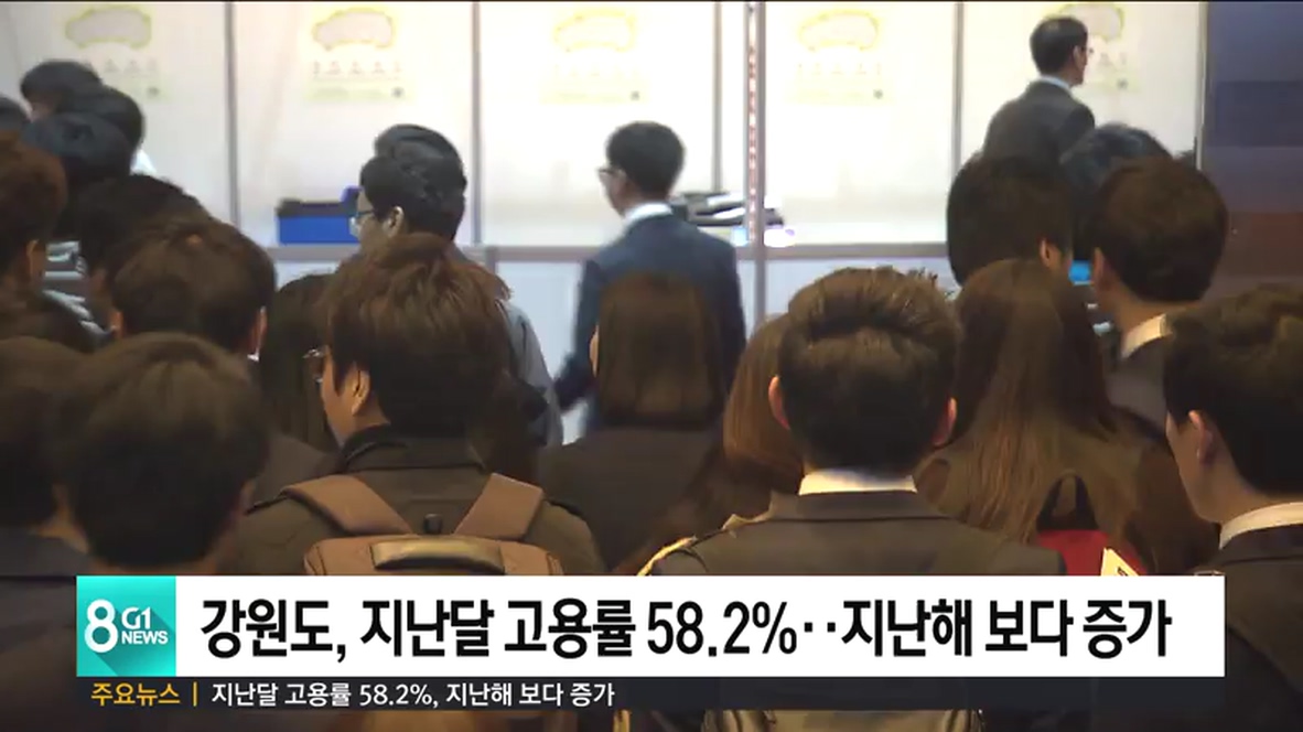 강원도 내 지난달 고용률은 58.2%로 지난해 같은 기간과 비교해 1%p 증가했습니다.