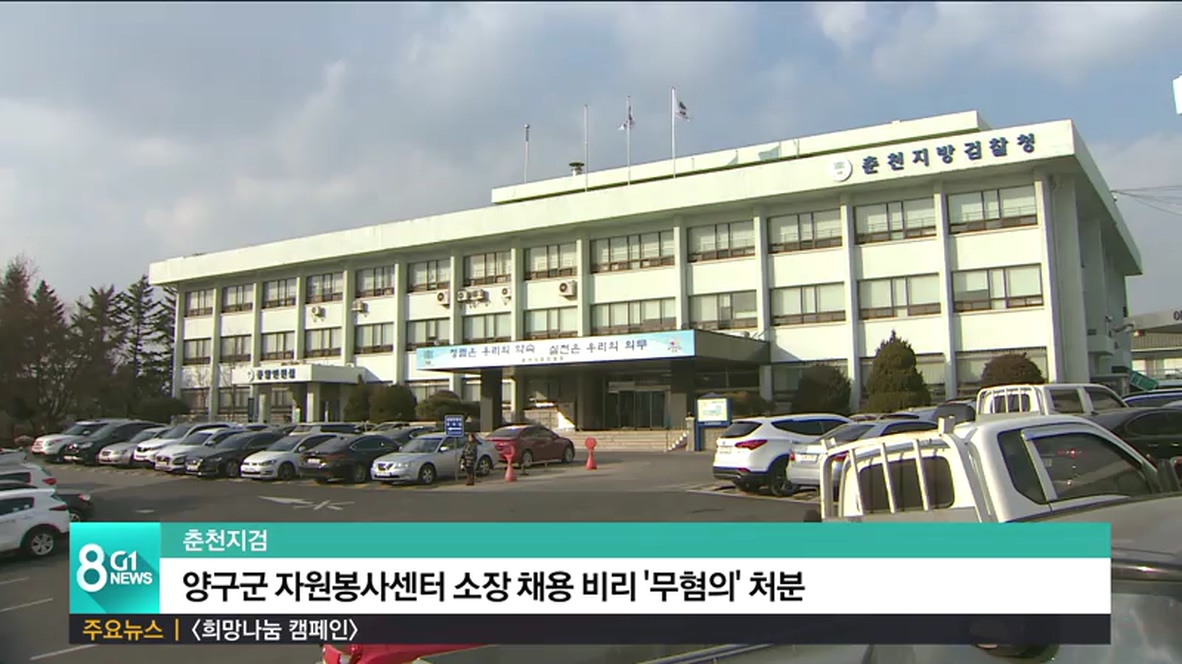 지난해 6월 경찰이 양구군 자원봉사센터 소장채용 과정의 비리 의혹을 수사하고 있다는 G1 보도와 관련해, 검찰이 최근 '혐의 없음' 처분을 내렸습니다.