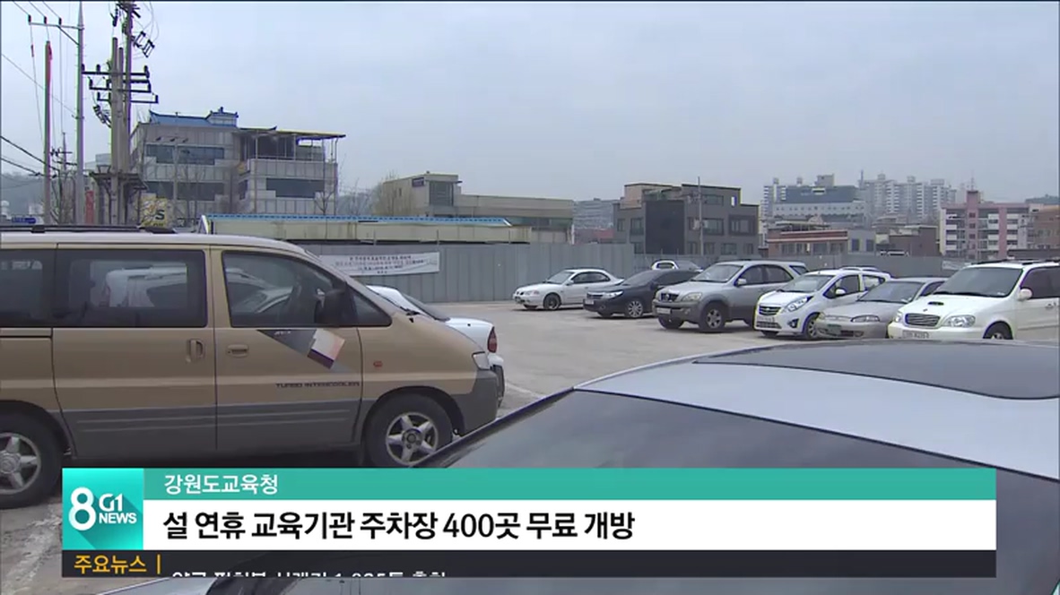 강원도 교육청이 오는 27일까지 교육청과 초·중·고교, 직속 기관 등 모두 400개 교육기관의 주차장을 무료로 개방합니다.