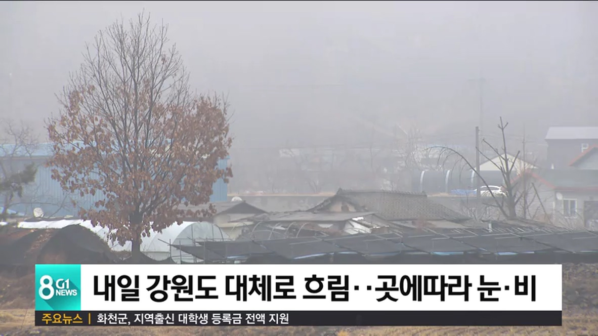 강원도는 내일(26일) 대체로 흐리고 곳에따라 비 또는 눈이 내리는 곳이 있겠습니다.