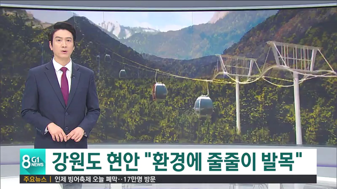 오늘은 설악산 오색케이블카 설치, 정선 가리왕산 복원과 원주 상수원보호 구역 해제 문제입니다.