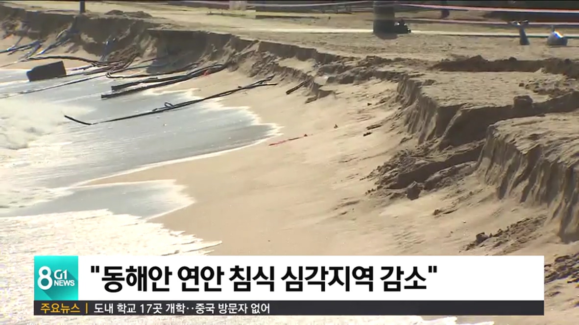 동해안 해안 침식에 대한 실태 조사 결과, 지난해 침식 진행이 다소 둔화된 것으로 나타났습니다.