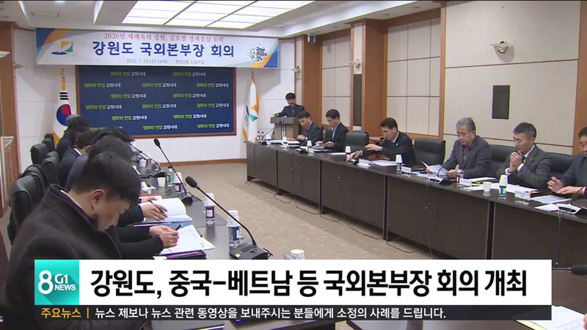 이번 회의에는 중국과 일본, 베트남, 러시아 등 강원도 국외본부장이 참석해 올해 타겟 상품 발굴과 모바일 플랫폼, 온라인 시장 품목 육성 등을 논의했습니다.