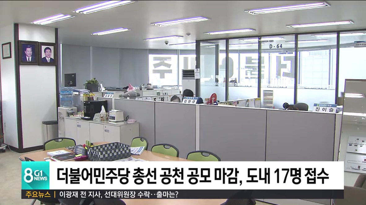 더불어민주당 공천관리위원회가 총선 공천 공모 접수를 마감한 결과, 도내에서는 모두 17명이 접수한 것으로 나타났습니다.
