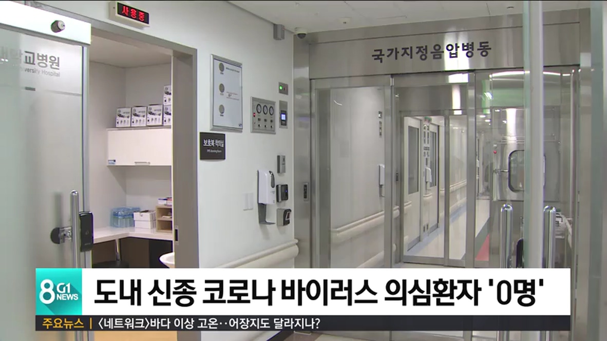 신종 코로나 바이러스 감염증 의심 증상을 보였던 10대 남성 1명이 어제(31일) 음성 판정을 받으면서 도내 9명이었던 의심환자가 모두 격리 해제 조치 됐습니다.