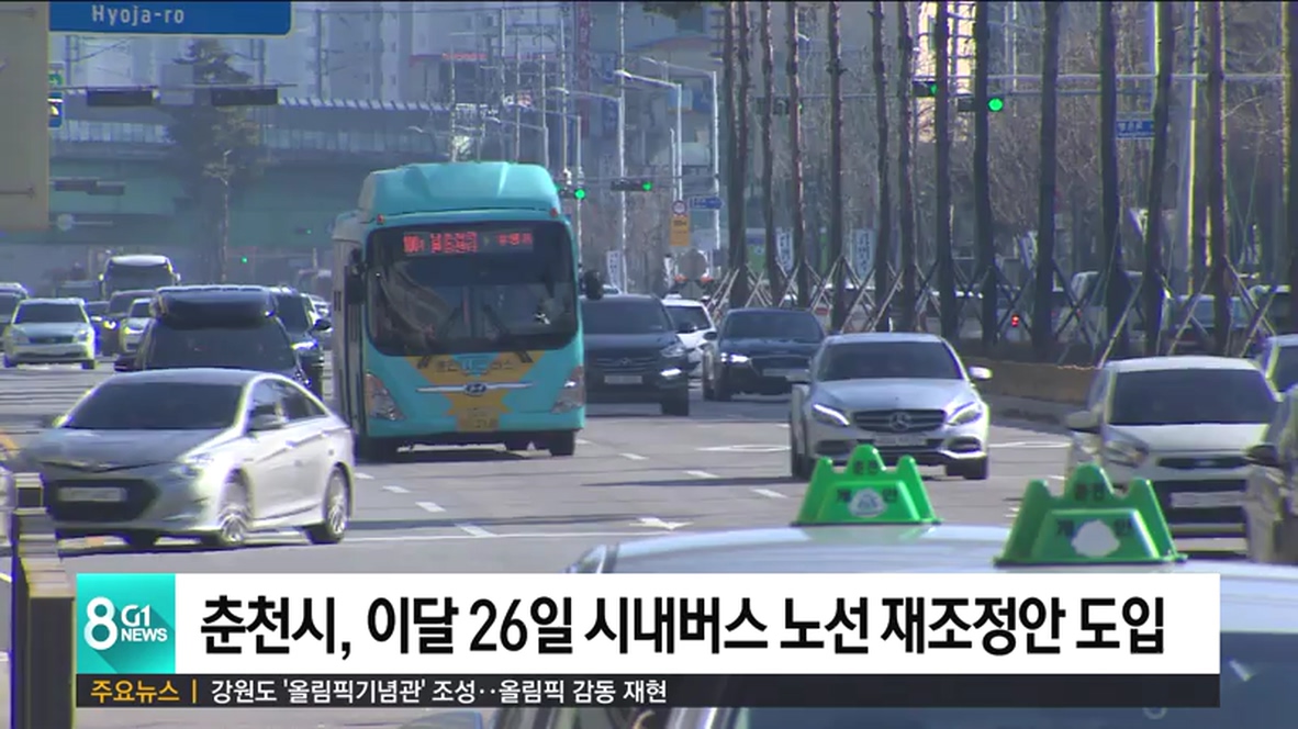 춘천시, 이달 26일 시내버스 노선 재조정안 도입