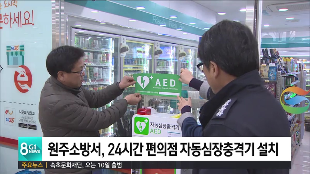 원주소방서는 오늘(6일) GS리테일과 업무협약을 체결하고, 유동인구가 많고 판매실적이 높은 GS25 편의점 메가박스점과 영서본부점 2곳에 자동심장충격기를 설치했습니다.