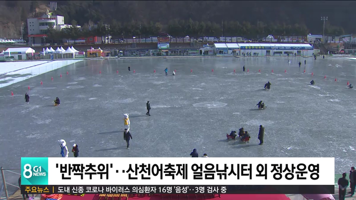 화천군은 주말 반짝 추위에 화천천 상류가 두껍게 얼어붙어, 산천어축제장 내 얼음광장 등에서 열리는 프로그램을 정상운영하고 있습니다.